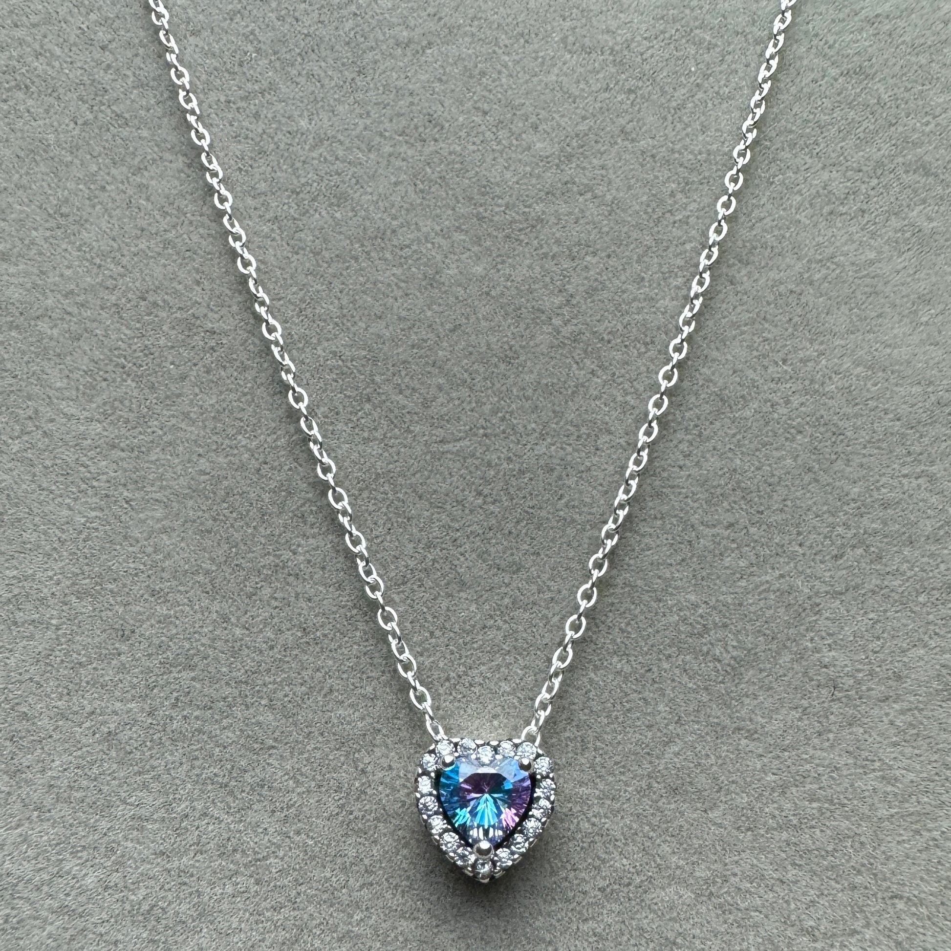 Collar Corazón Elevado Brillante Piedra Azul 45 cm (Ajustable A 40 cm)